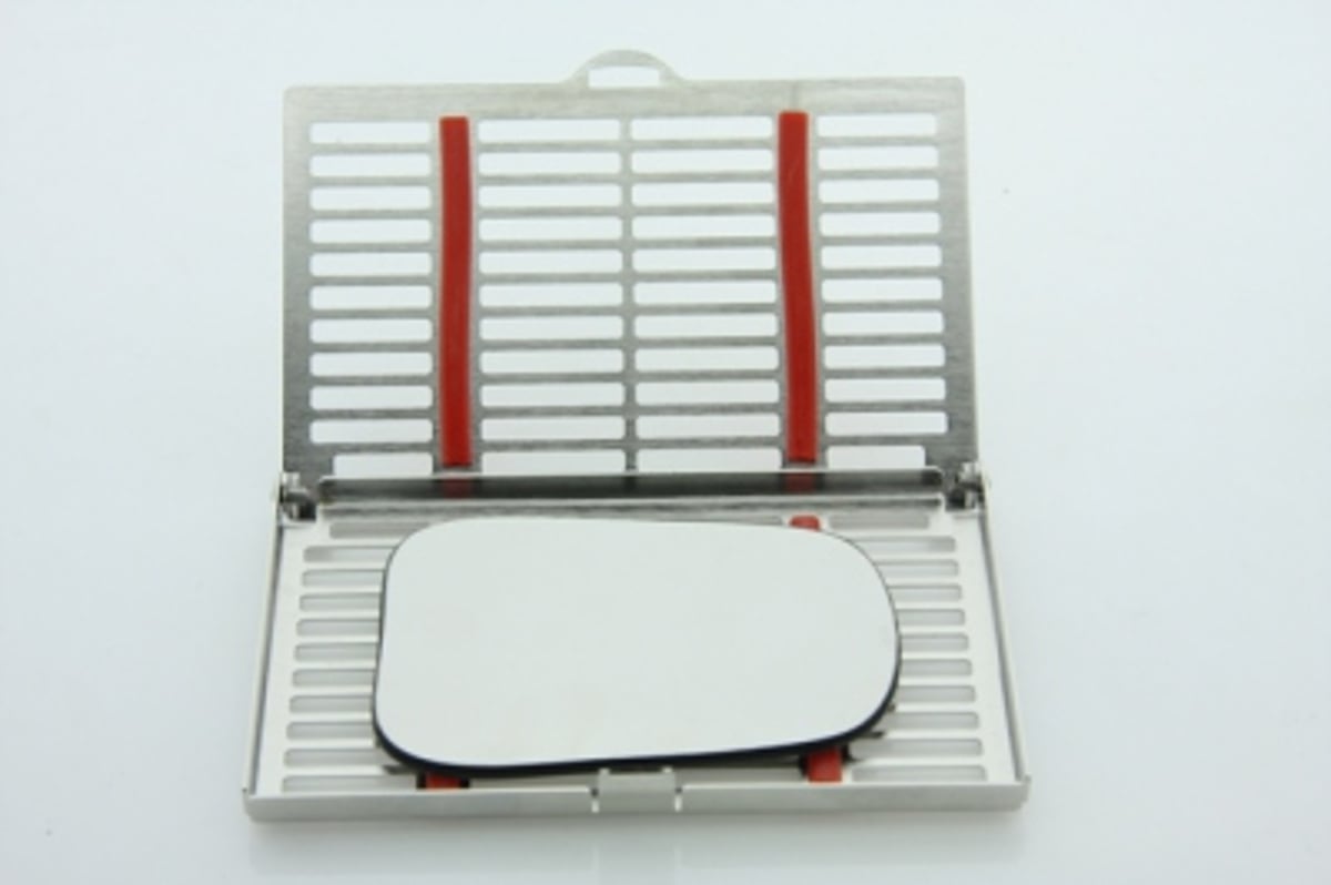 O Cassette para Espelhos Fotográficos #1 (12 x 8,5 x 1,3 cm) é ideal para proteger os seus espelhos fotográficos durante os processos de limpeza e esterilização, evitando riscos e danos. Fabricado com materiais de alto desempenho, como aço inoxidável e silicone, este cassete é compatível com todas as soluções de limpeza, incluindo banhos ultrassónicos e lavadoras desinfetantes.