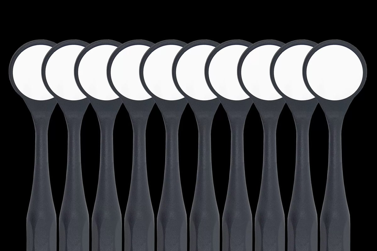 Esses espelhos são autoclaváveis, garantindo uma excelente assepsia e durabilidade, sendo adequados para uso contínuo no consultório. Disponíveis em caixas de 10 unidades e em várias cores, incluindo o elegante preto, eles oferecem praticidade e personalização.