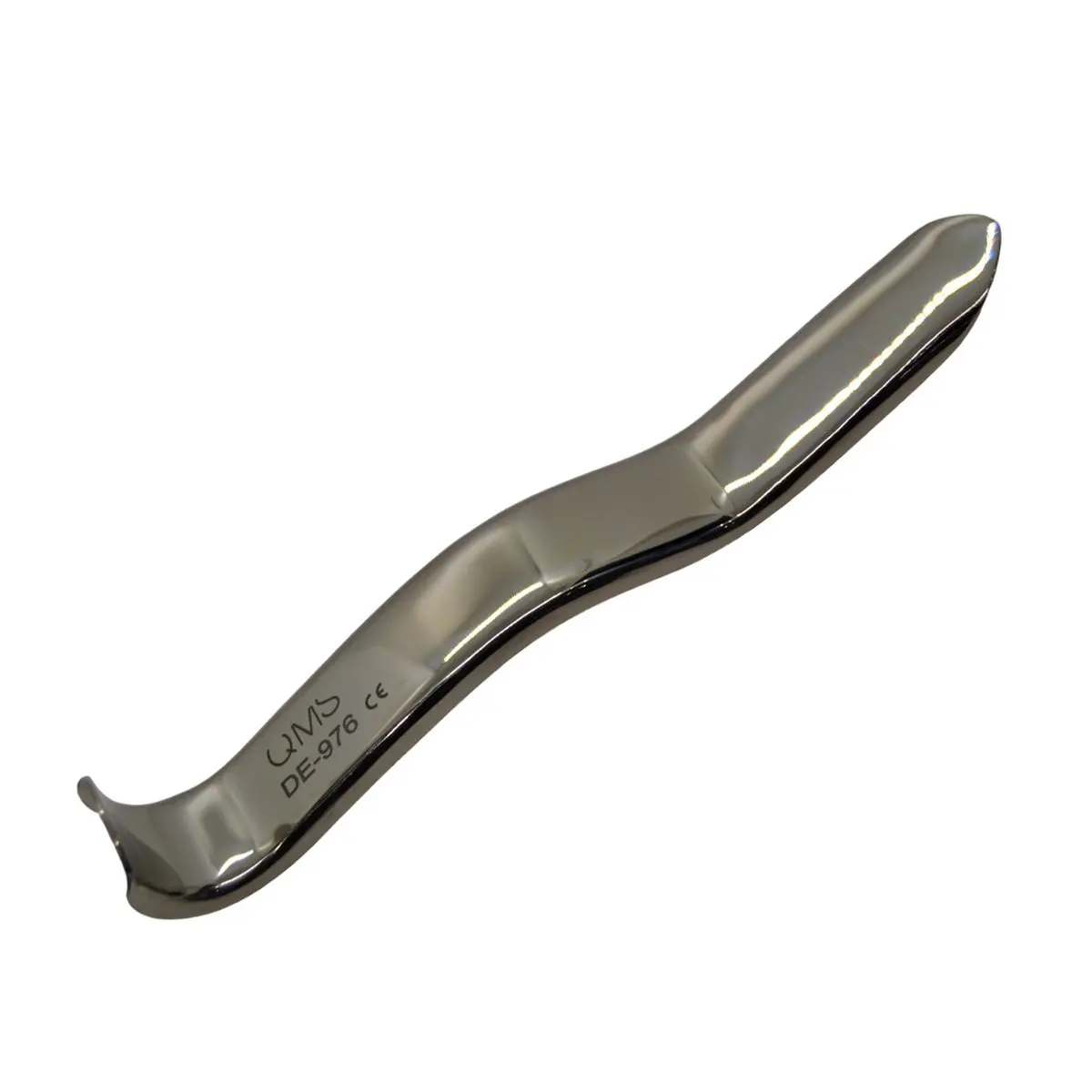 Fabricado em aço inoxidável graduado para uso médico, este retrator é autoclavável, durável e resistente à corrosão, garantindo longa vida útil mesmo após uso intensivo e esterilizações frequentes. A extremidade larga mantém retalhos afastados, enquanto a ponta fina separa lábios e mucosa de forma segura, sem causar desconforto ao paciente.