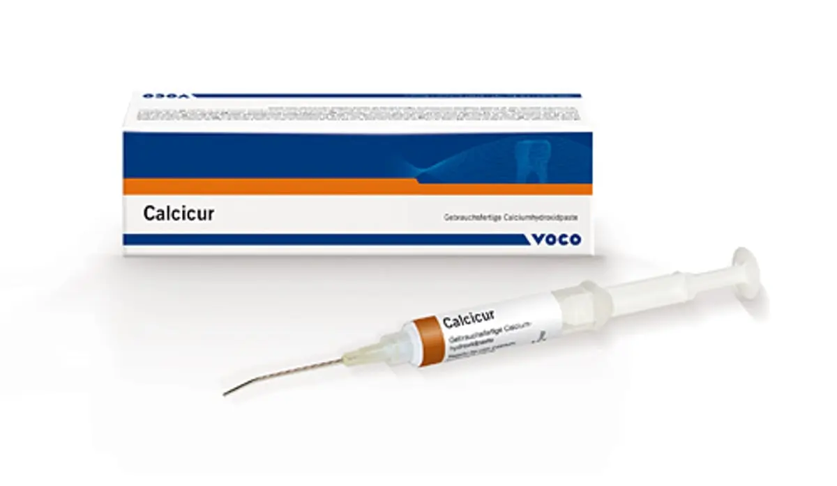 O Calcicur da VOCO é uma pasta de hidróxido de cálcio com uma base de água que não requer mistura. É um material ideal para enchimentos temporários e desinfeção de canais radiculares. É adequado debaixo de qualquer material de revestimento ou restauração.