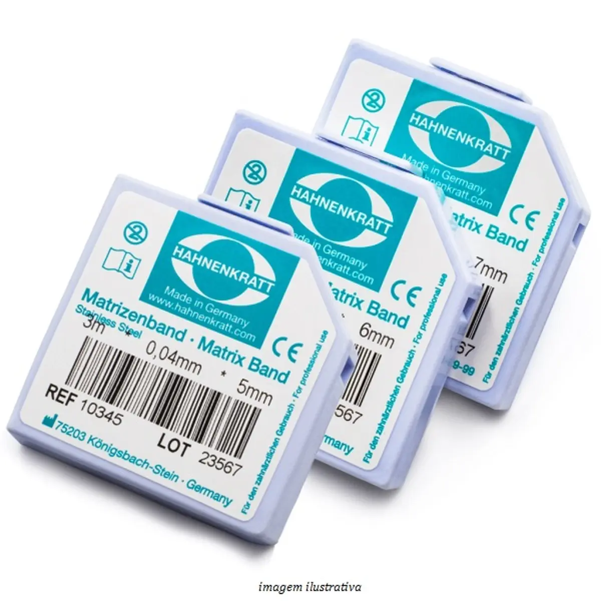 As matrizes em rolo da Hahnenkratt estão disponíveis em dispensadores de 3m nas espessuras de 0,03mm, 0,04mm e 0,05mm.