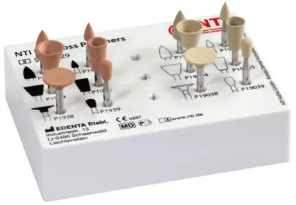 O grão selecionado dos polidores NTI Unique Set permite o polimento de qualquer tipo de compósito, utilizando um único instrumento
